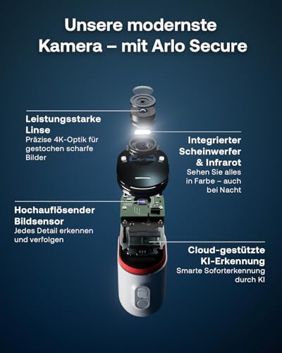 - ARLO SECURE-ABONNEMENT: Erhalten Sie erweiterte, KI-basierte Bewegungsalarme (Personen, Pakete, Tiere, Fahrzeuge, Brände, Erkennung von Familienmitgliedern); benutzerdefinierte Aktivitätsbereiche, Cloud-Speicher und Schutz vor Kameradiebstahl; jederzeit kündbar