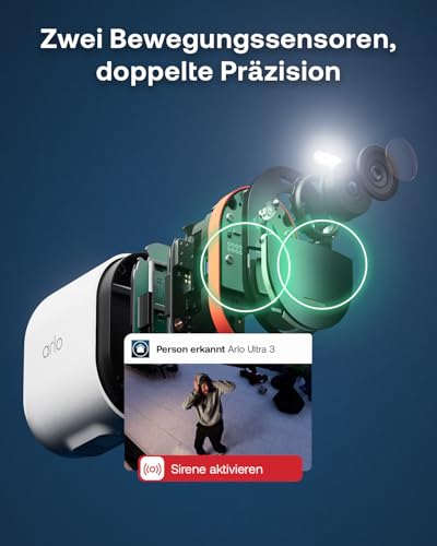 Mit der Arlo Ultra 3 WLAN Überwachungskamera 4K sichern Sie Ihr Zuhause smarter und zuverlässiger – rund um die Uhr. Erleben Sie das Gefühl ultimativer Kontrolle durch gestochen scharfe Aufnahmen und KI-gestützte Benachrichtigungen bei verdächtigen Ereignissen. So schützen Sie Eigentum und Familie mit präziser, automatisierter Überwachung.