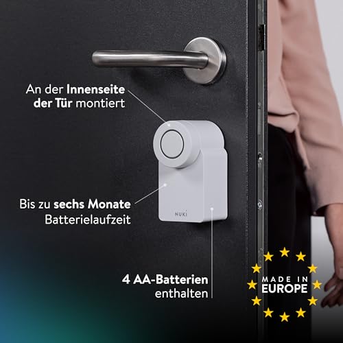 | Batterieversorgung | 4x AA-Batterien (inkl.), optional Nuki Power Pack für längere Laufzeit |