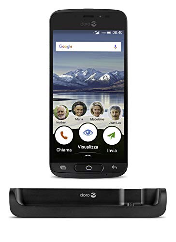 Schon mit Android 7.0 ausgerüstet und 16 GB Speicherkapazität und aus dem Jahre 2017 gibt es von Doro eine modernere Version des Smartphones für Senioren. Das Handy ist auch noch mal sehr viel leichter, es wiegt nur 95 Gramm. Als Slot beherbergt es die modernen Nano-Sim Karten. Hiermit ist ein Senior gut ausgerüstet, denn auch die Notruftaste ist mit dabei und es ist Hörgeräte kompatibel. Bilder für die Enkel können mit einer 8 Megapixel-Kamera mit Autofokus gemacht werden und diese dann gleich mit allen Freunden und Verwandten geteilt werden, z.B. per Mail, Facebook oder WhatsApp.